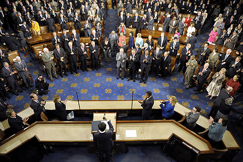 상ㆍ하원 의원들은 이 대통령이 북한의 핵 포기를 촉구한 대목과 퇴장 전 연설 말미에 영어로 “God bless you, God bless America.(신의 가호가 있기를)”라고 덕담한 대목에서 역시 기립박수로 화답했다.