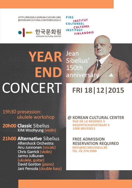 The Korean Cultural Center joins creative forces with the Finnish Cultural Institute to close off the year in style. Korean violinist Woo Hyung KIM will interpret late romantic Finnish composer Jean Sibelius, of whom we celebrate the 150th birthday.