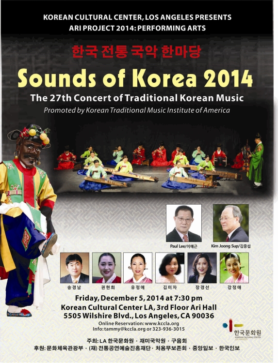 -Date: Friday, December 5, 2014 at 7:30pm -Place: Korean Cultural Center, Los Angeles 3rd Fl. Ari Hall -Online Reservation: www.kccla.org/english/programs_reservation.asp -For more Info: tammy@kccla.org or 323-936-3015