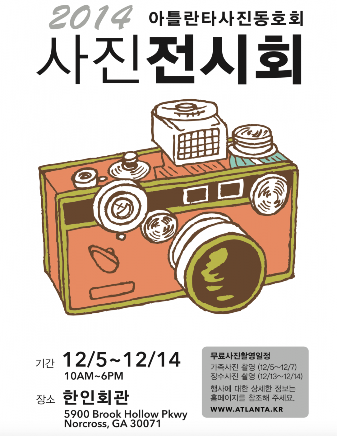 올해 제 5회 사진 전시회는 2014년 12월 5일부터 14일까지 아틀란타 한인회관에서 개최합니다.