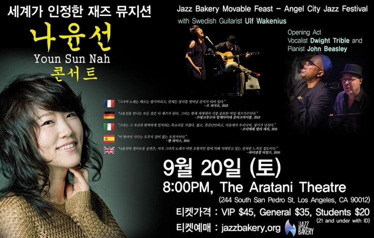 Jazz Bakery 2014 Angel City Jazz Festival... Headlining a double-bill, is Korean jazz vocalist Youn Sun Nah accompanied by Swedish guitarist Ulf Wakenius. French magazine, Le Monde, described Youn Sun Nah as – “A UFO touching the universe of jazz with a magnificent voice and passionate originality”. Her artistry traverses the vocal spectrum effortlessly to the extent where she’s not just another vocalist, she’s a musical instrument !