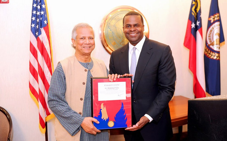 방글라데시 출신으로 마이크로크레딧의 아버지로 잘 알려진 유누스 교수는 2012년 1월 애틀랜타의 킹 센터에서 환영만찬을 받은 자리에서 애틀랜타가 자신의 새로운 고향이 될 것이라고 말한 바 있다.