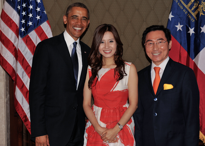 ▲지난 5월19일 오바마 대통령과 오찬을 마친 오유제 회장(오른쪽) 부부가 기념촬영하고 있다.