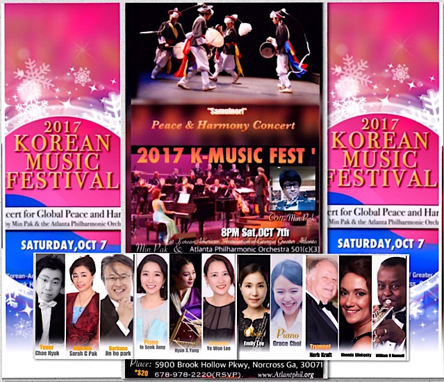 The Atlanta Philharmonic Orchestra, Inc. (Non-Profit, 501(c)(3)) and Director Min Pak presents the Global Peace and Harmony Concert, a contribution towards a peaceful world. This concert is specialized in Korean tunes including beautiful Korean folk songs and art songs along with your favorite classical music.