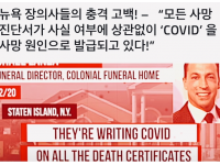 비영리 저널리즘 단체로서, 주로 비밀리에 불공정한 비리 등을 파헤쳐 보도하는 단체로 알려진 Project Veritas가 그동안 조사한 결과 및 최근에 내놓은 영상들에 의하면, 뉴욕시의 모든 ‘사망진단서’가 사실 확인도 하지 않은 채 모두 코로나 바이러스를 사망 원인으로 명시하고 있다고 뉴욕 장의사들이 시인하고 있습니다. 한 여성은, 자신의 …