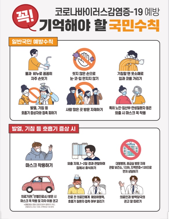 바이러스는 우리 손에서 5-10분만 생존이 가능하기에 자주 손을 씻으세요. 우리가 무의식적으로 눈을 비비고 코를 만지고 하는 경우에 감염되는 경우가 많습니다