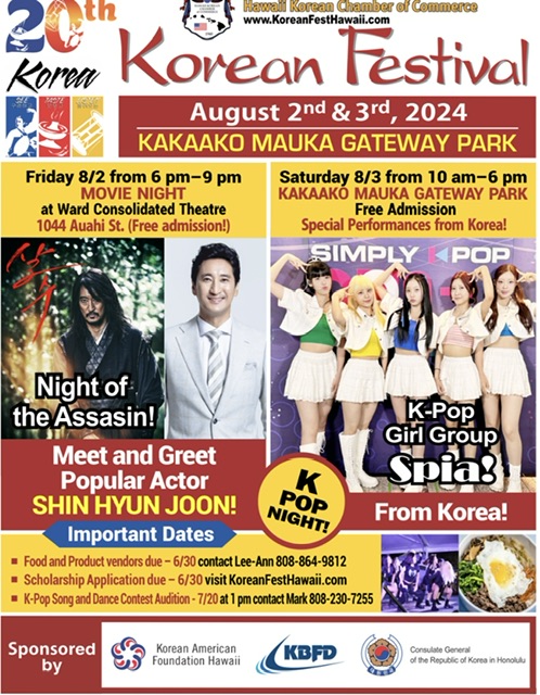The Korean Festival is an annual event run by the Hawaii Korean Chamber of Commerce, with the support of dozens of community organizations and businesses, and hundreds of volunteers. The purpose of the Korean Festival is to share, promote, and raise awareness of Korean culture in the community. Additionally, proceeds from the Festival are used to fund service projects and ventures which benefit the Korean and larger community in Hawaii, including an annual scholarship fund for outstanding, civic-minded students entering or currently enrolled in college.