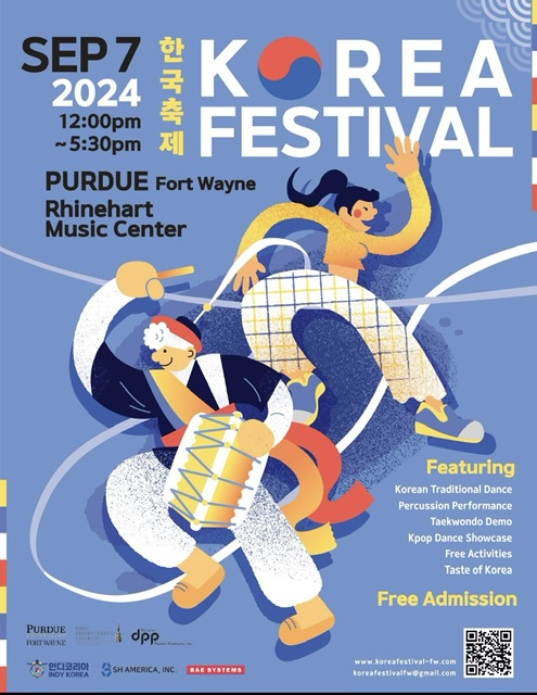 Get ready! Korea Festival 2024 is Saturday, September 7th from 12-5:30pm at Purdue University Fort Wayne Rhinehart Music Center!