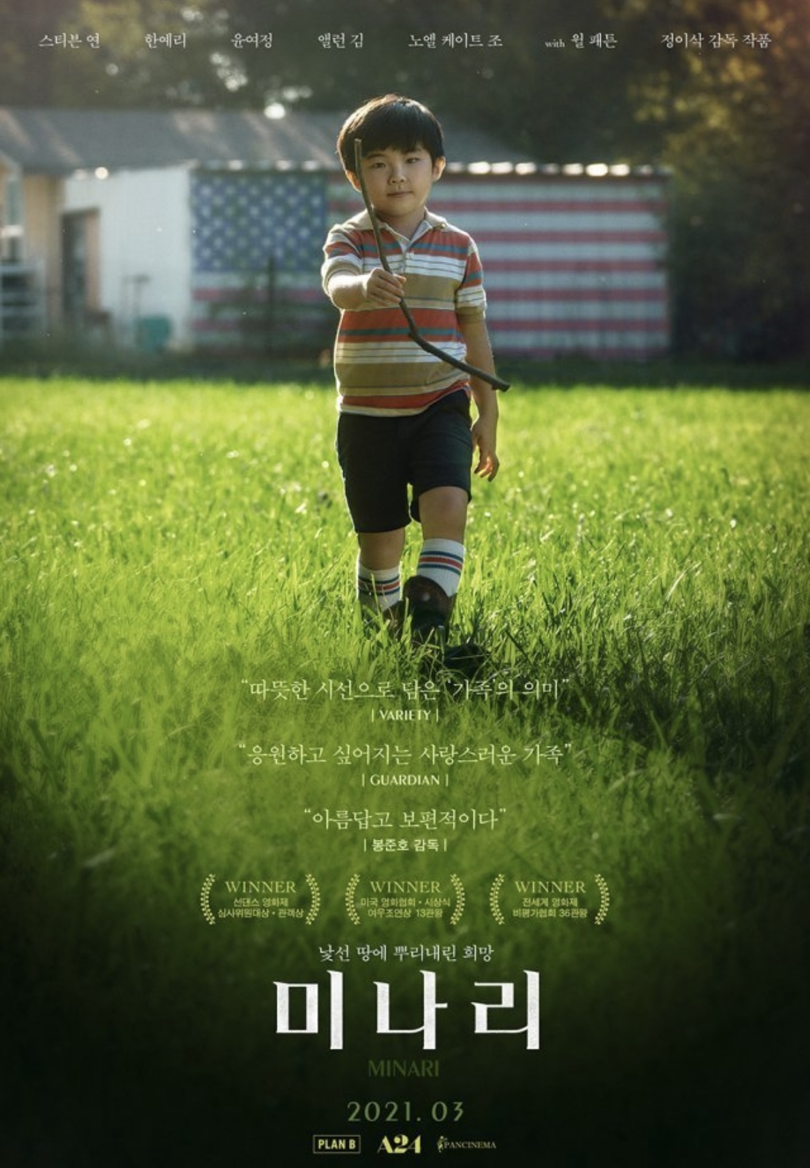 윤여정의 수상 여부에 관심이 쏠리는 건 온라인 연예 뉴스용 관심거리기 때문만은 아니다. ‘미나리’는 오는 3월 국내 개봉을 앞두고 지난해 부산국제영화제를 통해서 첫선을 보였다. 1박 2일 짧은 출장길에 이 영화를 관람할 기회가 생겼다. 윤여정은 영화에서 딸의 초대를 받고 미국으로 건너가는 친정어머니 역할을 맡았다. 한인 가정 이야기를 담다 보니 한국어 대사가 영화의 절반 이상이다.제목인 ‘미나리’는 영화에서 윤여정이 시냇가에서 심고 키우는 작물이다. 영화에서 윤여정은 손주들에게 말해준다. 미나리는 잡초처럼 잘 자라니 부자든 가난한 사람이든 누구나 뽑아 먹을 수 있다”고. 질긴 생명력을 상징하는 미나리는 한인 가정에서 태어난 감독 자신에게도 남다른 의미였을 것이다 |