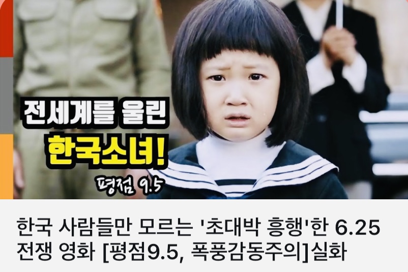 [이형기] 한국사람들만 모르는 '초대박 흥행'한 6.25 전쟁영화 [평점9.5, 폭풍감동주의]실화 https://you