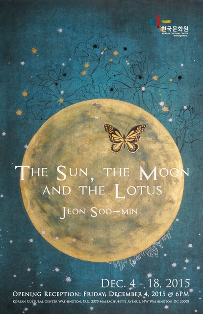 The Sun, the Moon, and the Lotus: Works by Jeon Soo-min WHAT: Exhibition, introductory talk, & opening reception WHO: Jeon Soo-min WHEN: Opening Reception: Friday, Dec. 4 @ 6:00 p.m. On View: Dec. 4-18 (no RSVP required, M-F, 9 am-noon & 1:30-5:30 pm) WHERE: Korean Cultural Center Washington, D.C. (2370 Massachusetts Ave. NW)