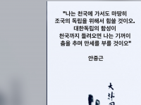 "나는 천국에 가서도 마땅히 조국의 독립을 위해서 힘쓸 것이오. 대한독립의 함성이 천국까지 들려오면 나는 기꺼이 춤을 추며 만세를 부를 것이오" - 안중근 -