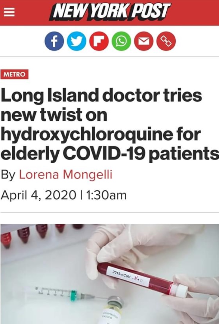 주로 80대 이상 노인들이고 고혈압 당뇨 심장질환 등 기저 질환이 있는 노인들에게 심장 부작용이 우려되는 항생제 azithromycin(ZPACK) 대신에 심장 부작용이 적고 수십년 전부터 쓰여진 항생제 doxycycline을 클로로퀸(hydroxychloroquine)과 함께 사용해서 가족들의 허락을 받고 우한폐렴 확진환자 47명에게 투약하여 38명이 완치되고 7명은 병원에 입원시키고 2명 사망하였다고 한다.