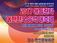 애틀랜타 대한민국 음악제 2017 KOREAN MUSIC FESTIVAL 2017 애틀랜타 필하모닉오케스트라(지휘 박민)가 주최하는 “2017 KOREAN MUSIC FESTIVAL” 공연이 토요일 7일 저녁 애틀랜타 한인회관에서 막을 올립니다. 2017 애틀랜타 코리안 페스티벌의 대미를 장식할 애틀랜타 필하모닉의 오케스트라 공연이 내일 7일 저녁 8시에 펼쳐집니다. 박민 씨가 지휘하는 애…
