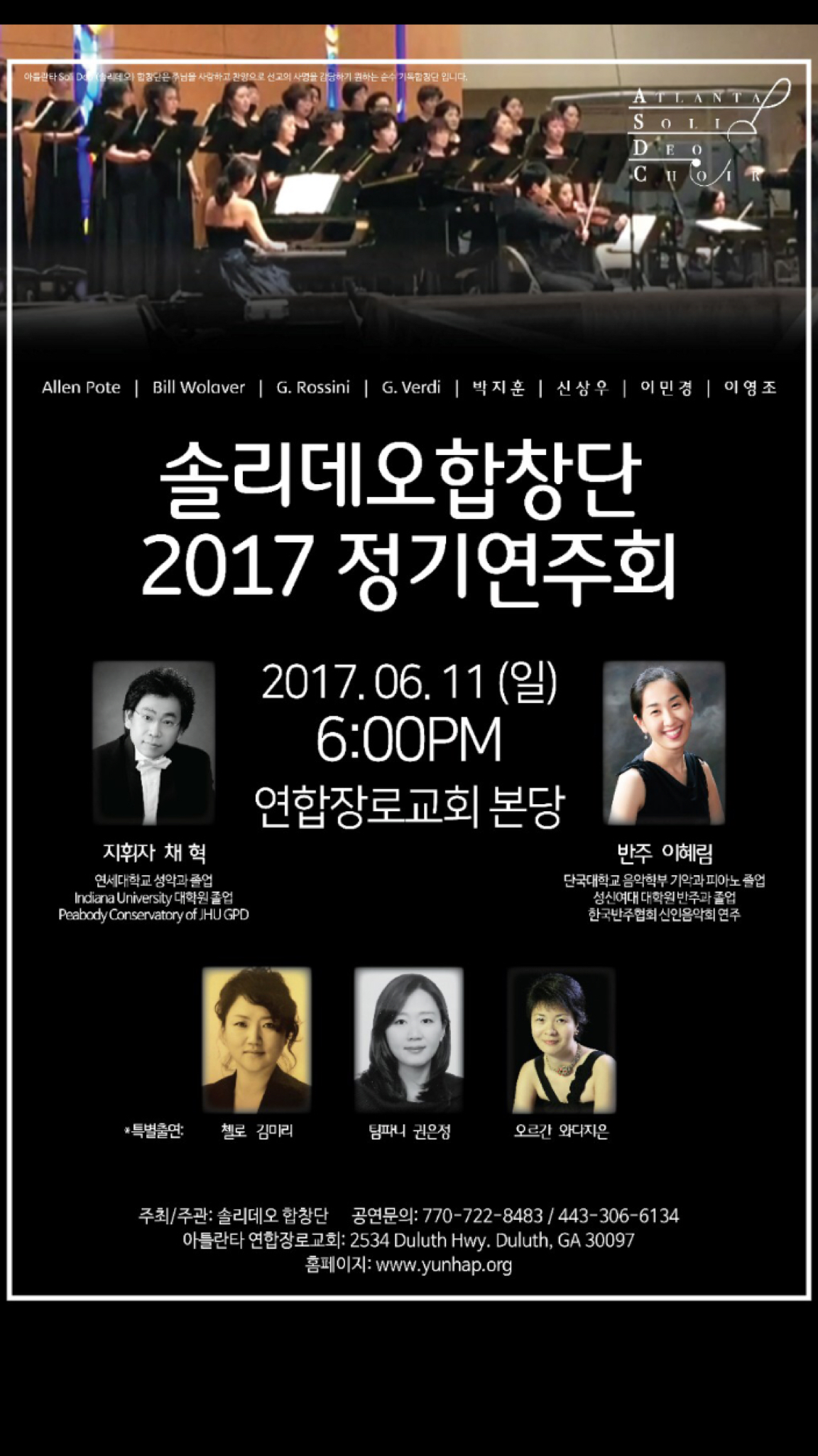 솔리데오 합창단이 오는 6월 11일 (일)올 정기연주회를 갖는다.