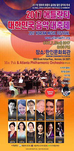 애틀랜타 필하모닉오케스트라(지휘 박민)가 주최하는 “2017 KOREAN MUSIC FESTIVAL” 공연이 토요일 7일 저녁 애틀랜타 한인회관에서 막을 올립니다.