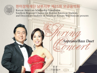 한미장학재단, 4월 3일 연합장로교회서 기금모금 콘서트 개최 민요 - 가곡 - 아리아 등 12곡 열창 한미장학재단 남부지회(공동지부장 유경화, 마이클 박)는 오는 4월 3일 오후 6시 아틀란타 연합장로교회에서 제25회 장학기금 모금음악회 ‘스프링 콘서트’를 개최한다. 이번 음악회에는 소프라노 조경화와 베이스 조원용이 출연하…