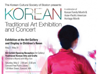 Korean Traditional Music/Dance Concert Saturday, May 16, 2015 at 7PM The Umbrella Community Arts Center(40 Stow St. Concord, MA) In celebration of Korean Family Month and Asian-Pacific American Heritage Month, the Korean Cultural Society of Boston presents a music/dance concert on Saturday, May 16, 7:00 pm. A musical group consisting of gayageum (Korean 12- or 25-string instrument), percussion and bass clarinet will perform tr…